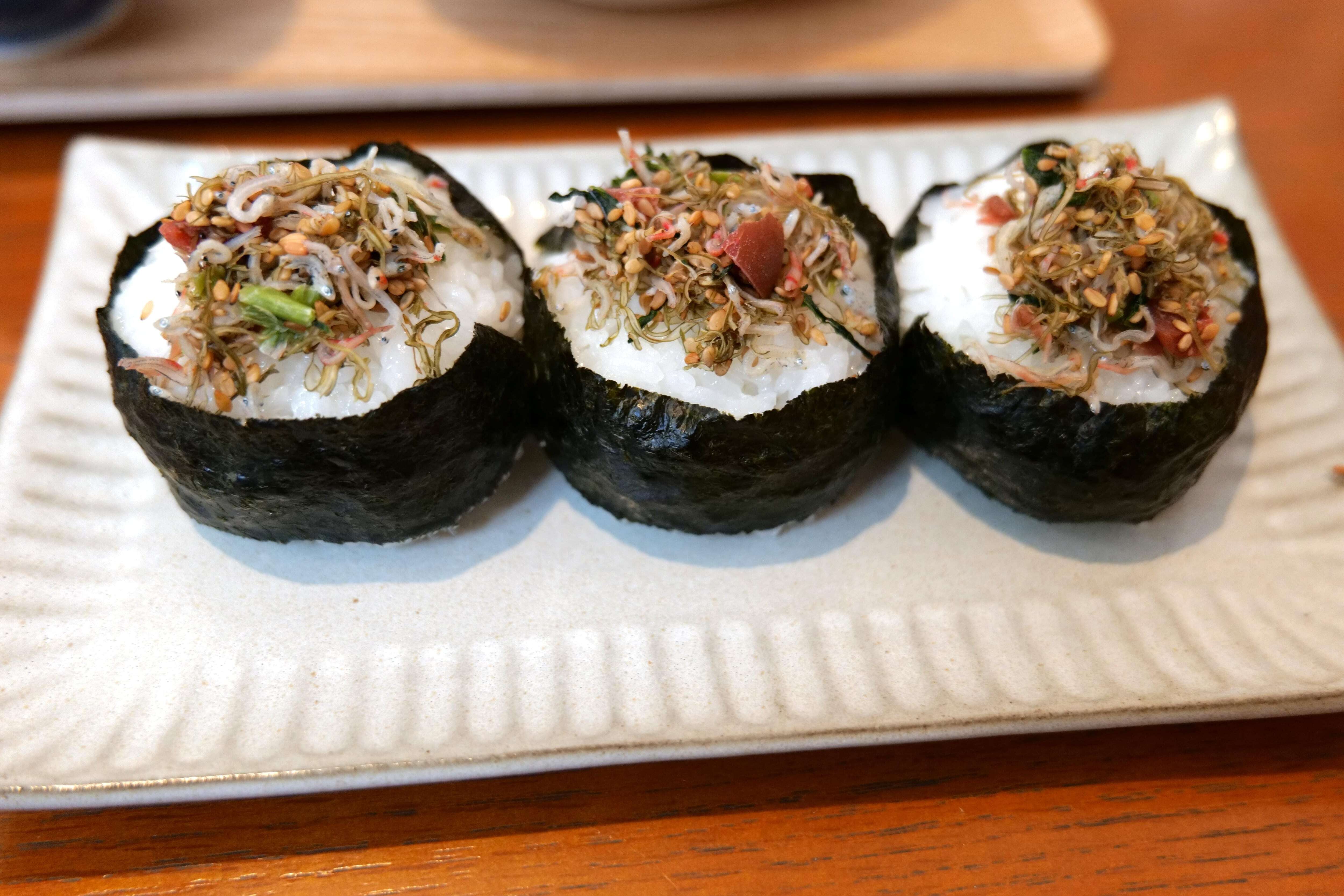 原材料名:いわし稚魚、昆布、梅、野沢菜、ごま、醸造酢、砂糖、食塩、しょう油、ブドウ糖加糖液糖/調味料(アミノ酸)、甘味料(ソルビット、カンゾウ、ステビア)、調味料